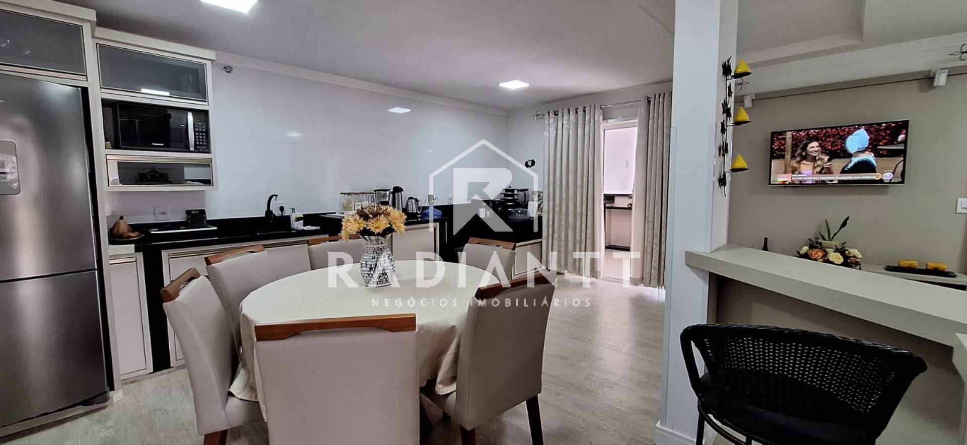 1 Lavabo. Sala de estar e cozinha integradas.
